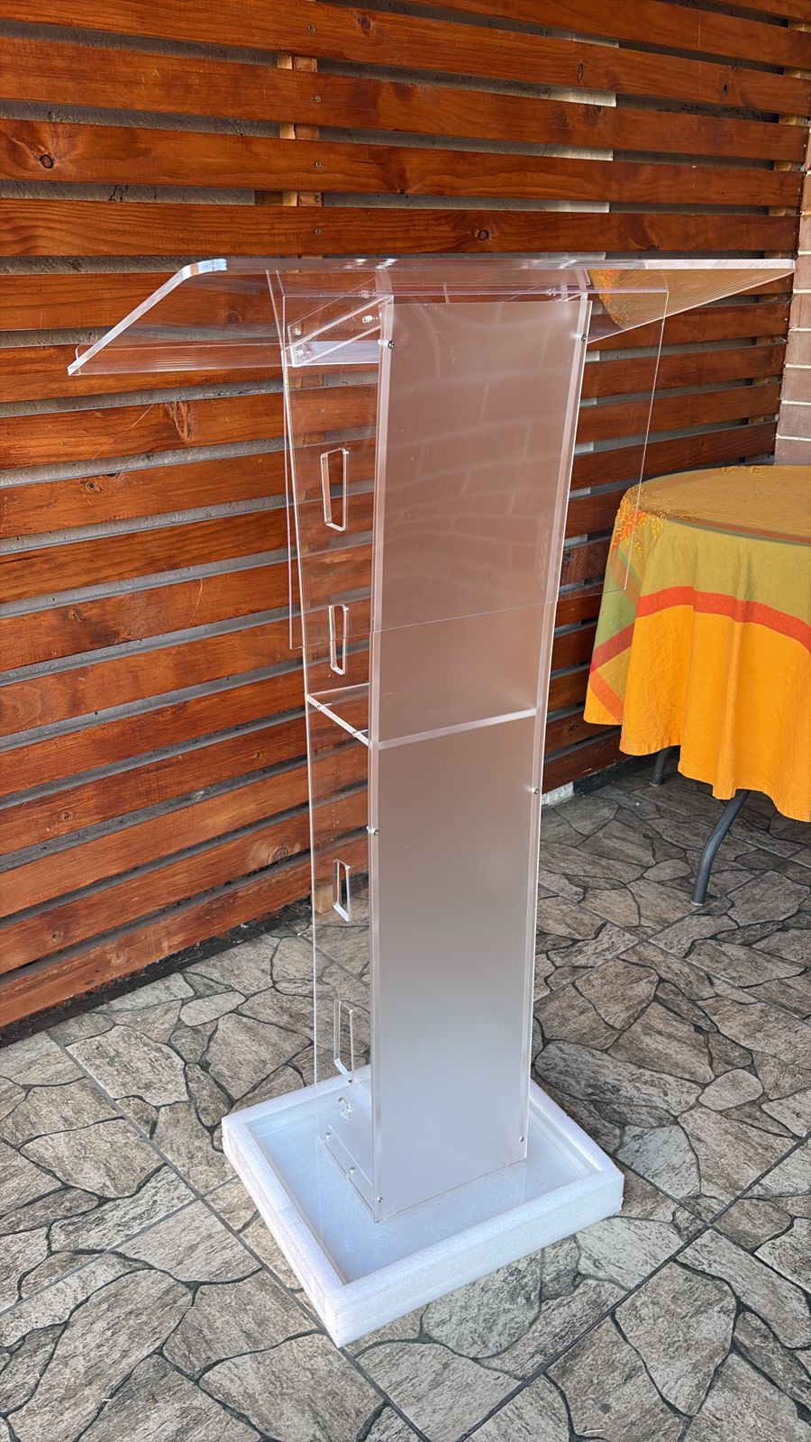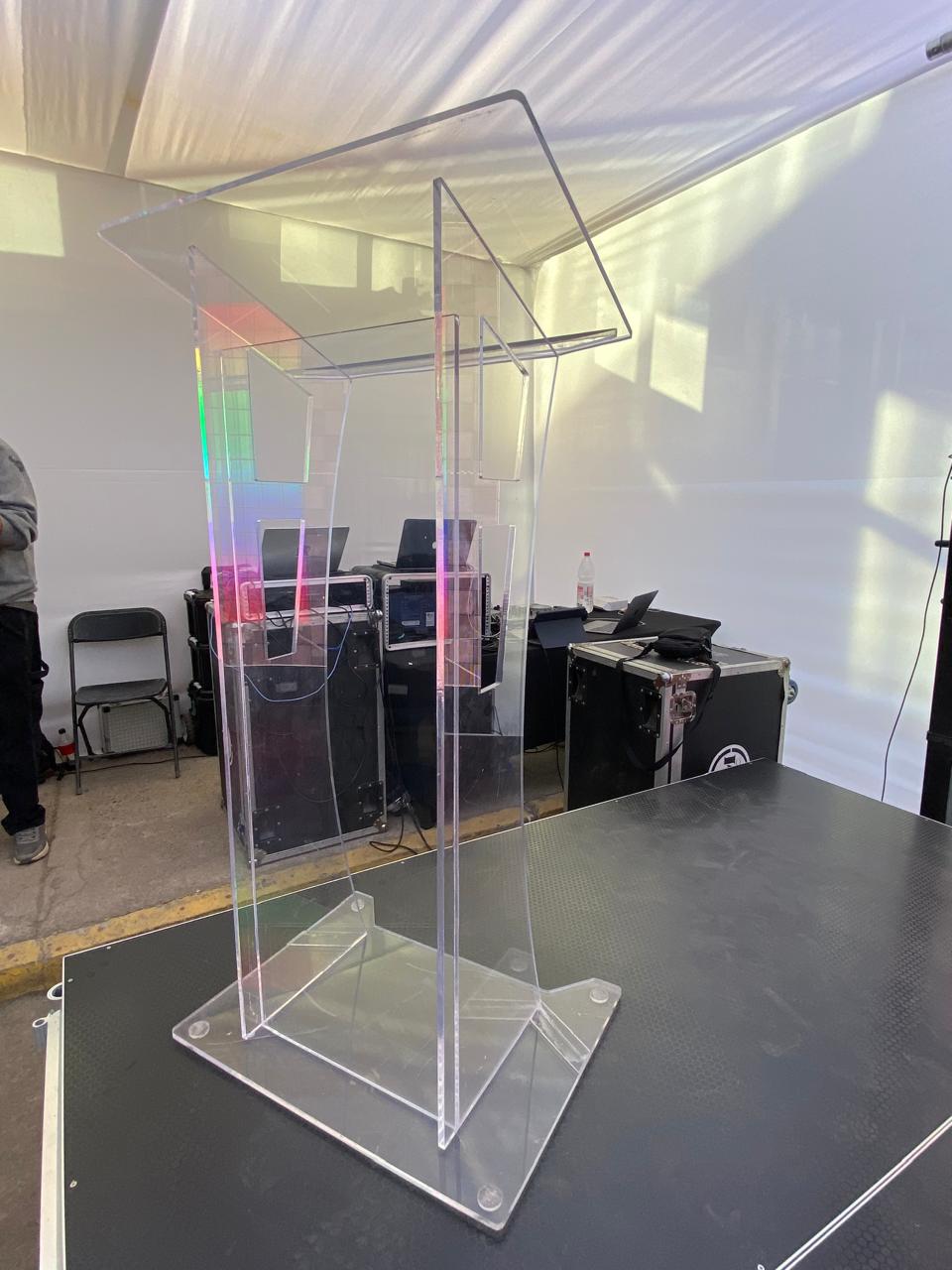 Podio acrÍlico, super estético para eventos; Empresas, conferencias, seminarios, cátedras, eventos religiosos, etc. Medidas 58x36x115.