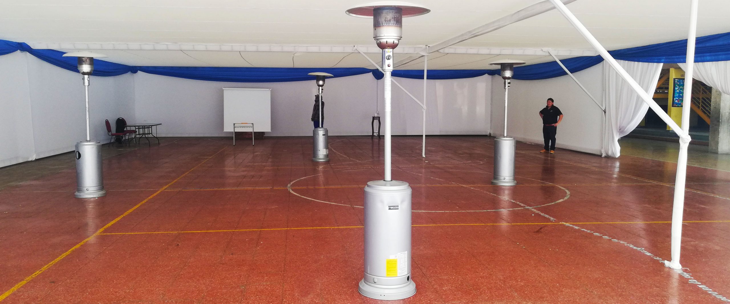 Estufas para eventos, turbo calefactores, certificadas. Cubre un perímetro de de 6 a 8 Mts. A la redonda, hasta 600 mts. Altura 1,35 mts y 2,23 Mts de altura. Arriendo con y sin gas de 5 y 11 k, despacho y retiro en todo Santiago, V y VI región.